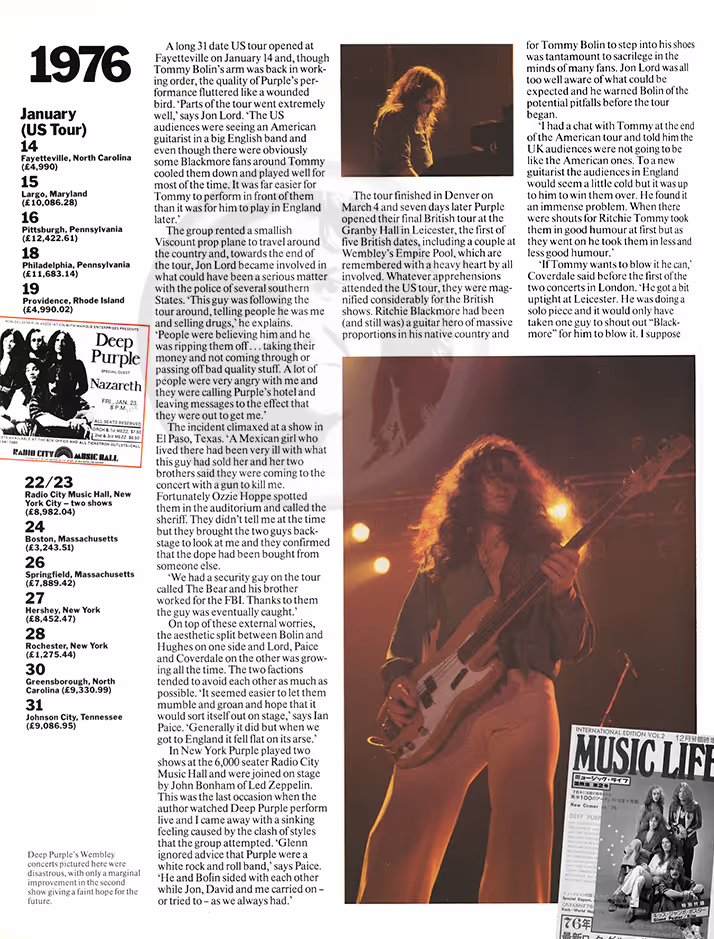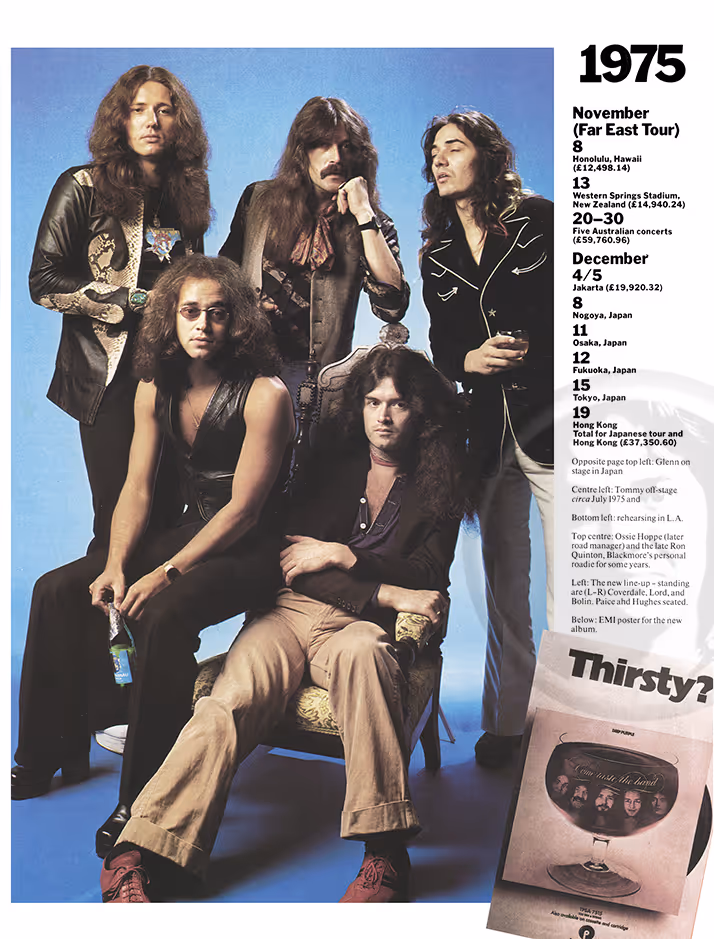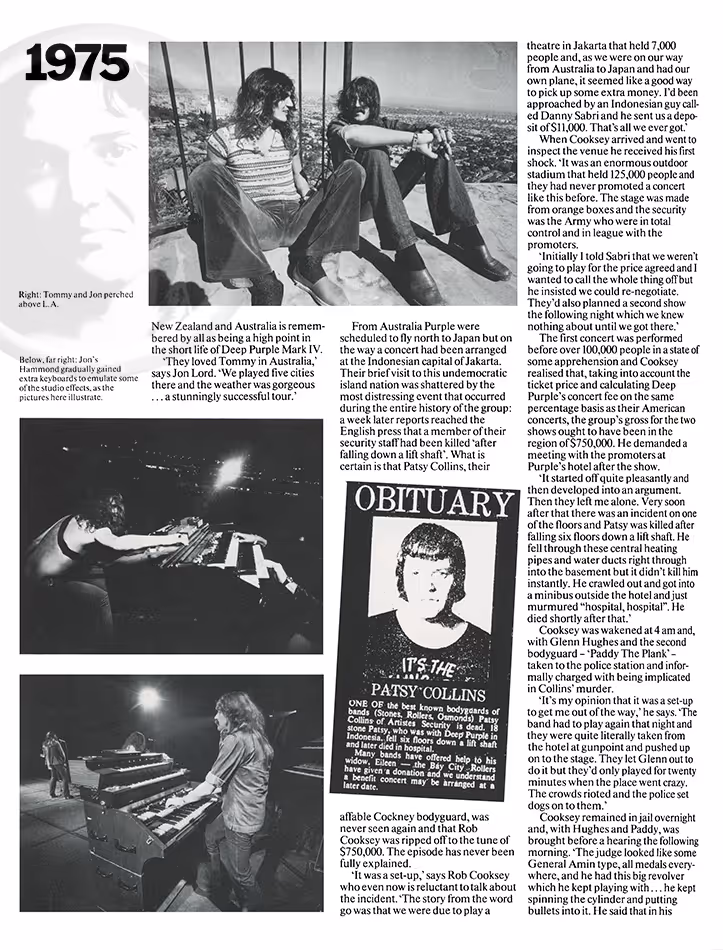 Come October 1975, I read in the local newspaper gig guide that Deep Purple would be touring Australia in November/December. Wait what? I promptly bought a ticket - no way was I missing this. The date for the show was on Monday, December 1st, at the W.A.C.A. sports ground. This venue was an outdoor venue, which meant tickets had no allocated seating and you could sit/stand on the grass or sit in the stands further back. Awesome, I could get there early and down the front and get in a good position to watch my fave band.
